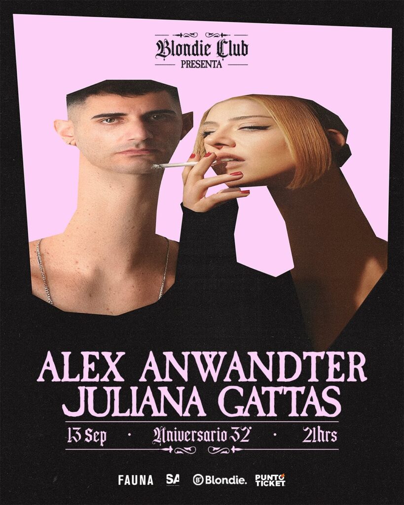 En el marco del aniversario del club, Alex Anwandter y Juliana Gattas estarán presentándose en Club Blondie este 13 de Septiembre, las entradas en Puntoticket se encuentran agotadas en su totalidad.