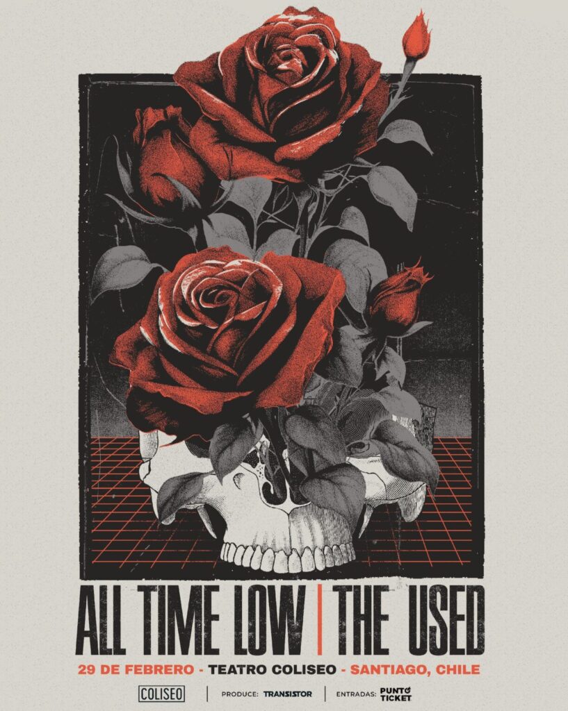 En una noche inolvidable y con un día lleno de eventos, el jueves 29 de febrero se presentan en el Teatro Coliseo a las 20:00 hrs. dos grandes bandas muy reconocidas en la escena Pop Punk / Rock Alternativo. All Time Low y The Used llegan juntos a Chile, una cita que nos presentará lo mejor de sus repertorios y grandes éxitos.