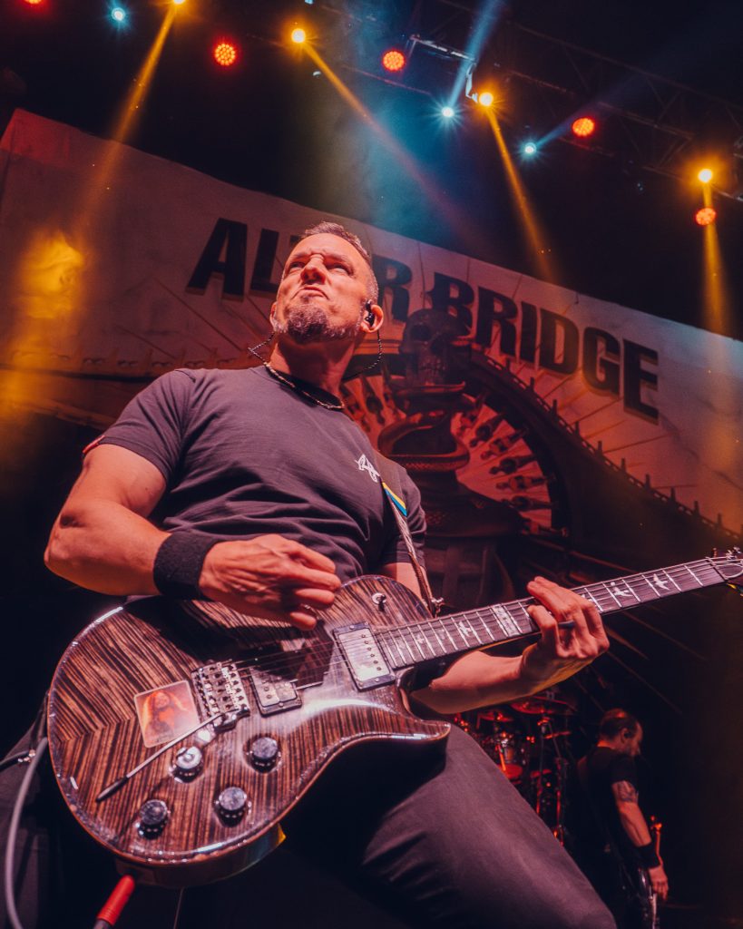 Con un Caupolicán ya en su máxima capacidad y con gran puntualidad, Alter Bridge saltó a escena con «Silvertongue», demostrando su poder frente a un público que no perdió tiempo y de inmediato comenzó a saltar. Ya con «Addictedtopain», corte extraído de «Fortress» (2013), la banda apretó el acelerador, llevando a la audiencia a corear con fuerza. Aunque hasta su tercer tema, no había interacción directa con su público, la banda se sintió cercana, acercándose a la gente o lanzando uñetas a la asistencia. Myles Kennedy por su parte mostraba un sólido desempeño vocal, demostrando el por qué se ha mantenido durante dos décadas tras el micrófono, además de acompañar como segunda guitarra, mientras Mark Tremonti se mostraba en llamas en cada solo.