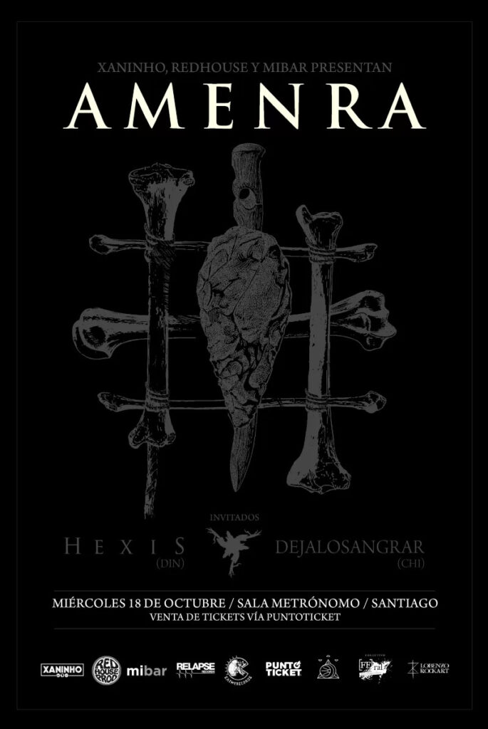 Amenra en Chile, junto a Hexis y Dejalosangrar, se estarán presentando en Sala Metrónomo el martes 18 de octubre. Las entradas se encuentran a la venta por medio del sistema Puntoticket. Produce Red House Producciones.