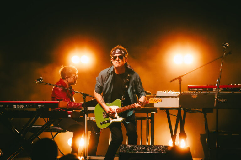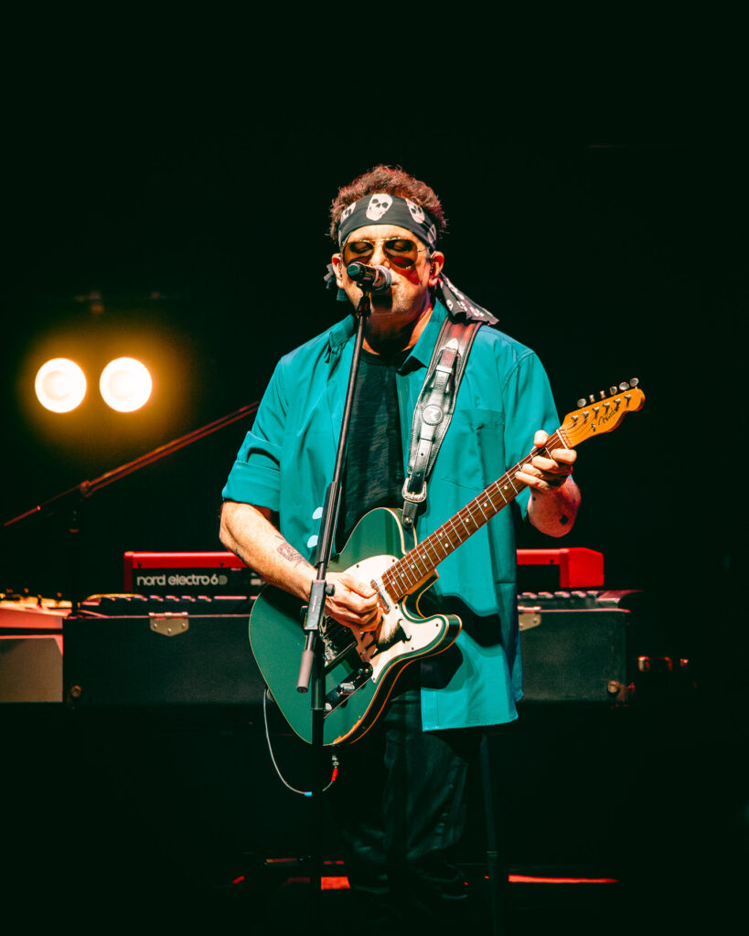 El alto volumen y una actitud rocanrolera al mango. Así se podría resumir el primer concierto de Andrés Calamaro y compañía en Santiago este 18 de octubre de 2024. La intro con «Kashmir» retumbando en los parlantes dio la bienvenida a una sesión electrificada con el Bohemio de voz quebrada y sentida lírica, acompañado del peso del tiempo y el veneno lento de sus versos para desenfundar un repertorio infalible y que crece en emotividad e intensidad: «El día de la mujer mundial», «¿Para qué?» y «Cuando te conocí» abren las botellas de los años en flor para llenar las copas con «A los ojos». Un repaso sin melancolía, una forma de mantener viva la llama del alma que va contra la corriente sin extinguirse. Un ejercicio que marcaría toda la jornada.