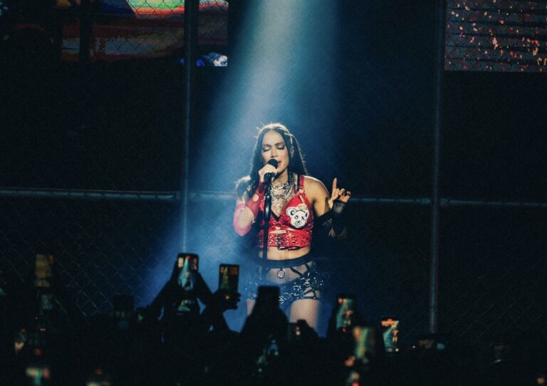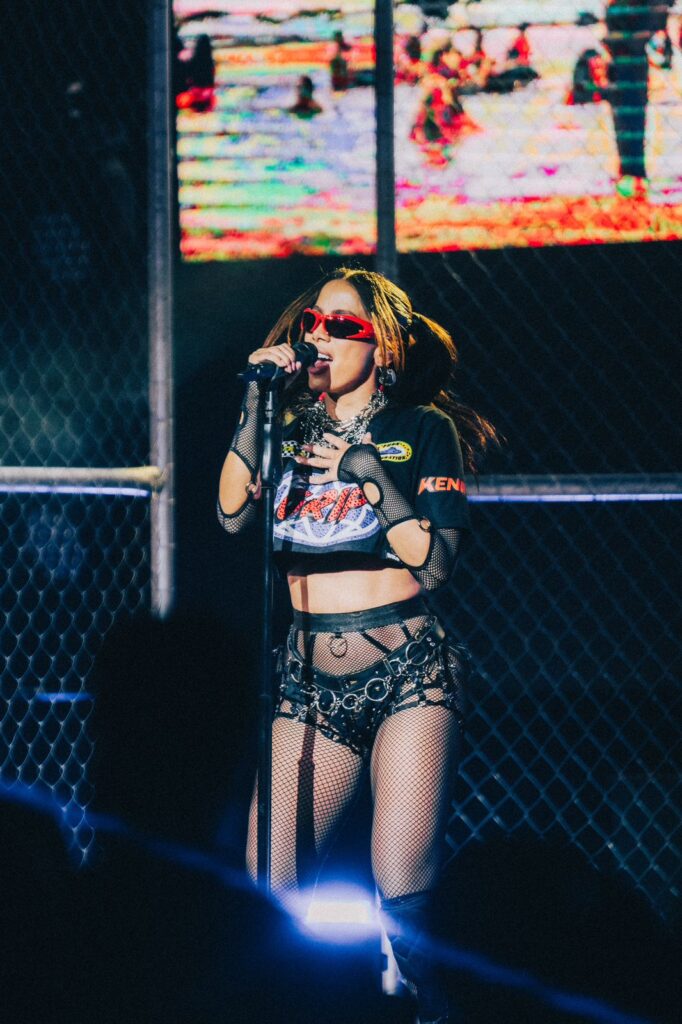 Y así fue que a las 9 de la noche en punto hizo aparición Anitta junto a su cuerpo de baile comenzando con «Funk rave», canción parte de «Funk Generation» (2024), en un show que comenzó sin tregua, no permitiendo pausas ni respiros, a costa de beats hechos para remover el cuerpo. La propuesta era sumamente directa: Funk carioca, abundante twerking y letras directas que apelan al deseo y la celebración más hedónica. Luego de un segmento inicial de varias canciones para calentar motores «Lose your breath» vino a abrir su interacción con el público, indicando su felicidad de estar en Chile. La puesta en escena era sencilla, con un escenario enrejado, simulando las calles de alguna ciudad latinoamericana, dos pantallas con proyecciones y un cuerpo de baile inagotable, pero lo importante era el ritmo hecho para menear caderas.