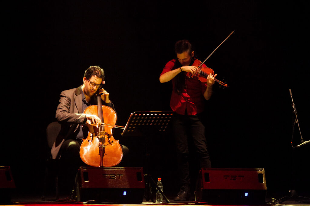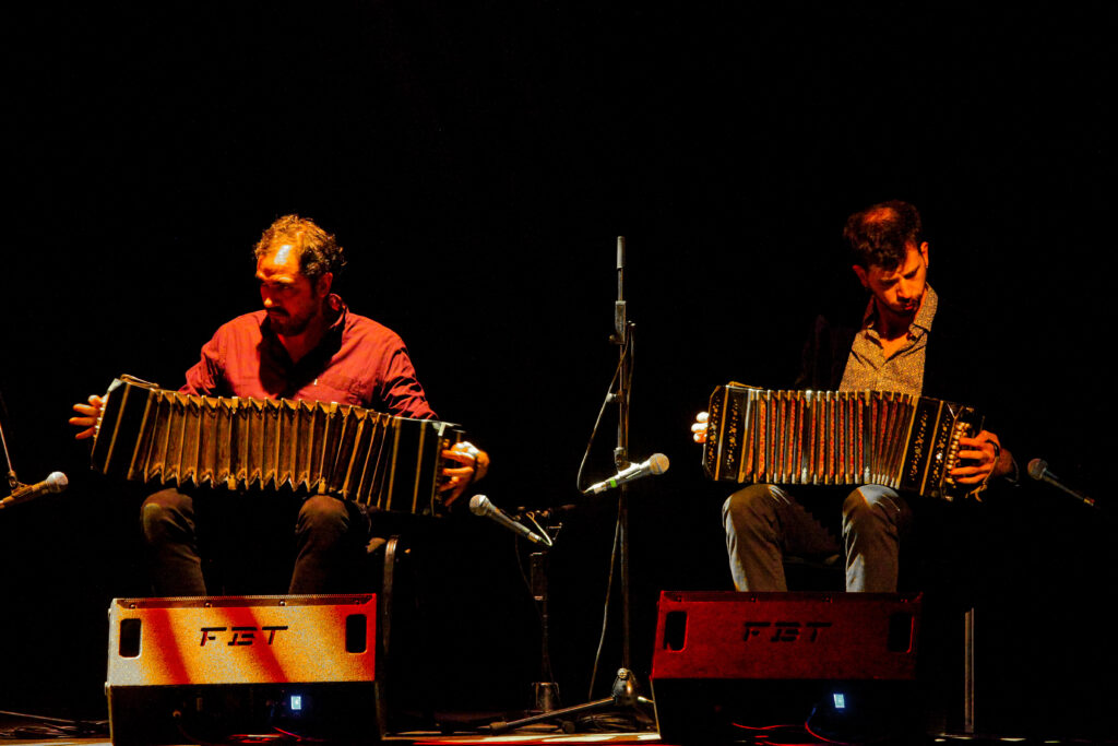La noche comenzó con Rodolfo Jorquera Fontanela y su bandoneón, con luces tenues y un sonido cautivador desde el primer movimiento frente a un público entusiasta y apañador tras cada pieza entregada por el músico. Fue así que clásicos de Anibal Troilo (en versión instrumental) dialogaron con material de la autoría de Jorquera de manera precisa y muy sentida para lograr una conjunción del bandoneón y la voz de Hugo Cruz para alcanzar los momentos más altos de unión entre los intérpretes sobre el escenario y quienes disfrutaban desde sus butacas. Un comienzo iluminador de una velada dedicada al tañido de Buenos Aires.