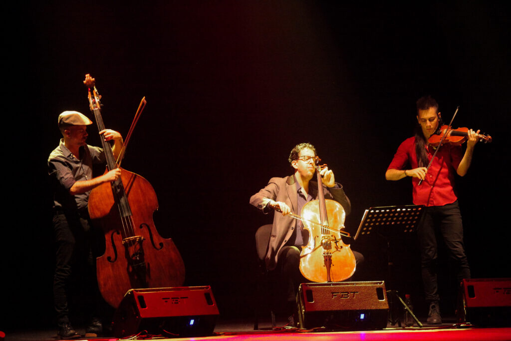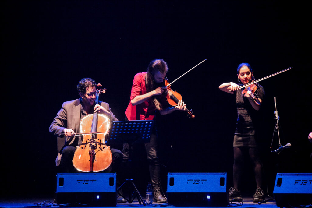 Cada cierto tiempo, Julián Peralta (piano y dirección) tomaba el micrófono para introducir las secciones del programa, contar alguna anécdota o hacer comentarios sobre la historia, discografía o periplos y experiencias en la trayectoria de Astillero. Una de esas historias de encuentros dio paso a Rocío del Pilar Acosta, violista que comparte la pasión por el tango en estas tierras, quien se unió al conjunto para complementar el sonido en una amalgama de unión trasandina del más alto nivel.