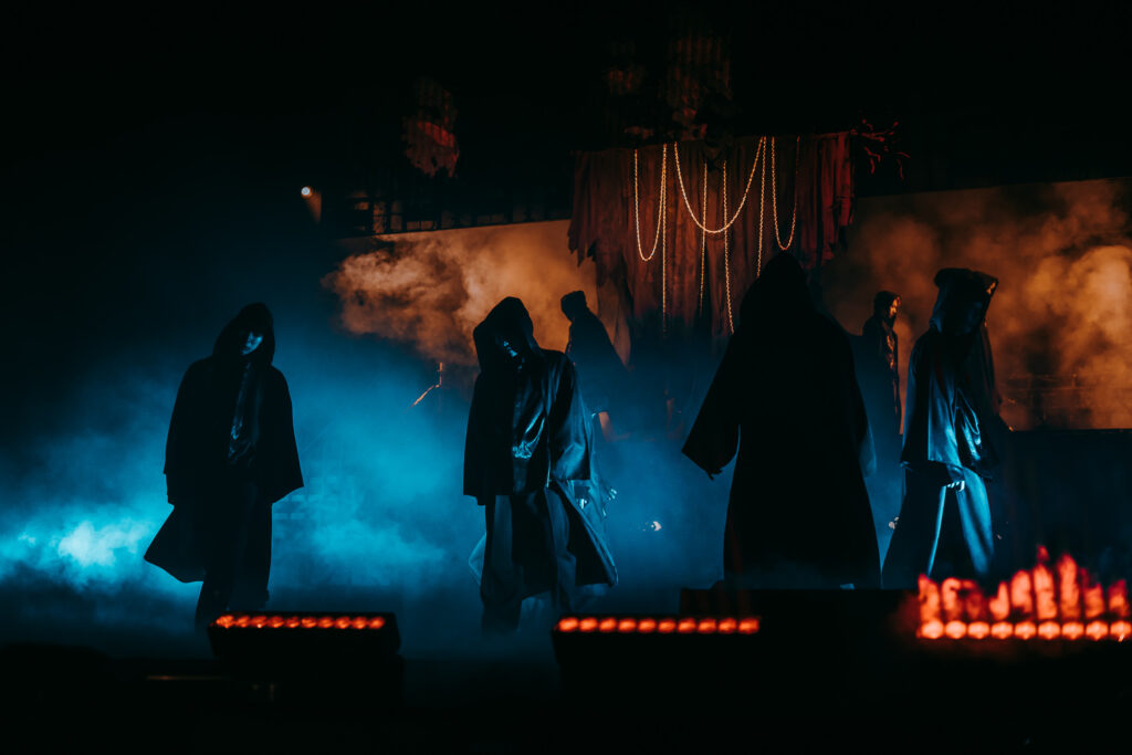 Con aproximadamente 25 minutos de retraso, se apagan las luces y siete figuras acompañadas de un cuerpo de bailarines comienzan a interpretar una poderosa y conocida canción, «Halazia». Toman un respiro y explican que uno de sus integrantes, Jongho, quien es el maknae y vocalista principal, no podría acompañarlos esa noche tras someterse recientemente a una cirugía. La gente grita fuerte y con cariño su nombre. Seonghwa, dulcemente, dice en español “espero que lo pasen bacán”. Hongjoong, como buen líder y capitán de barco, insta a cuidarse y aboga por la seguridad personal del público. Sigue la fiesta con «Answer», acompañada de una coreografía impecable y las emociones navegando por un mar de gente en llamas.