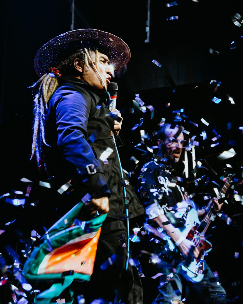 Así, como un verdadero chamán armado de glitter, sombreros extraños y una energía desbordante, ingresaba al escenario Carlos “Nekro” Rodríguez quien, acompañado en esta oportunidad de Marcelo Vidal en la batería, Darío López en el bajo y Javier Marta en la guitarra, daría inicio a una presentación de poco más de una hora de duración con “I Do” y el a estas alturas clásico atemporal del punk en español “Brick by Brick”.