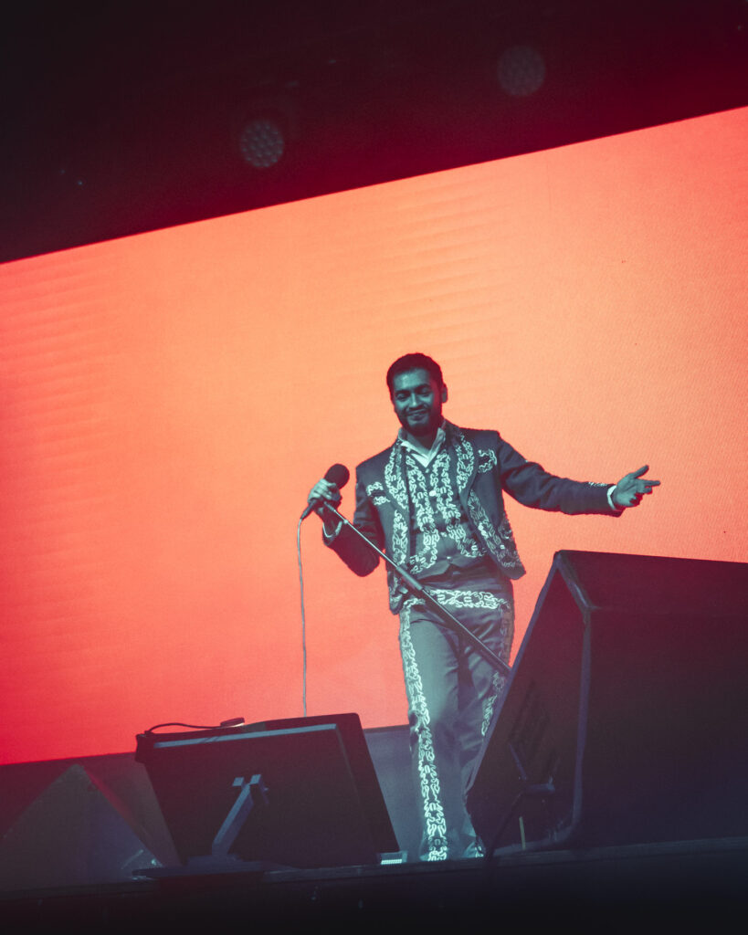 En una previa muy ad hoc musicalmente y que daba la sensación de estar escuchando entre la radio Imagina y Pudahuel en los años 90’s mientras la sala se fue llenando, con canciones de José José, Rocío Durcal, Lucero y finalmente el clásico «Querida» de Juan Gabriel (y que a coro encendió al público expectante), las luces se apagaron siendo las 21:20 hrs. Y la banda subió al escenario para dar inicio al show que duró alrededor de dos horas y media.