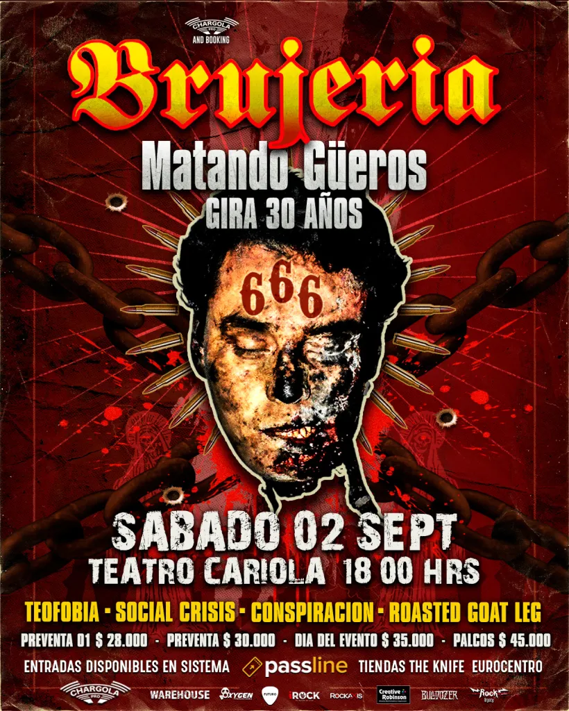 Así, «Matando Güeros» (1993), disco con el cual Brujería se da a conocer al mundo, representa no solo el debut de la banda, sino que además, a treinta años de su lanzamiento, el álbum se transforma en la razón perfecta para celebrar mediante una nueva visita a nuestros país, siendo el Teatro Cariola el punto de encuentro para el desarrollo de esta misa negra, ritual que además abarcará el recorrido por otras ciudades del país, tales como Talca, La Serena y Valparaíso, transformando en un verdadero ritual esta conmemoración del lanzamiento de uno de los mayores discos del metal en español.