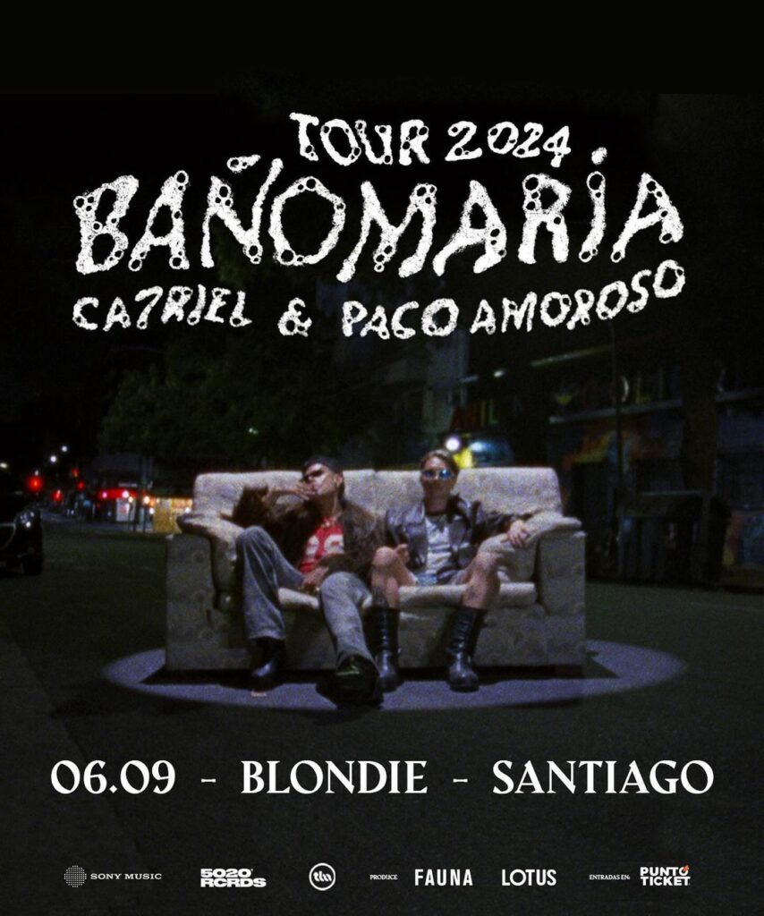 CA7RIEL & Paco Amoroso, anuncian la gira presentación de su primer disco juntos «Baño María» en un tour que se extenderá con más de 30 shows en 14 países de América Latina y Europa. En Chile será en Club Blondie el 06 de septiembre.