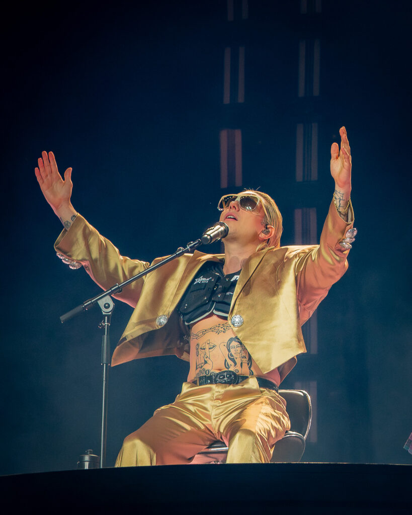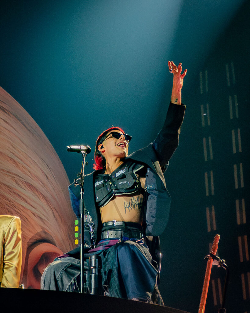 El show dio un muy breve descanso luego de “Cono hielo”, para volver rápidamente con “#Tetas” y todo su sonido funky, seguido de “El día del amigo” y el cierre con “El único”, canción que tiene la hoy mega famosa línea de “¿Tatuaje en el cuello?”, que puso el punto final a una presentación tan ecléctica como extravagante.