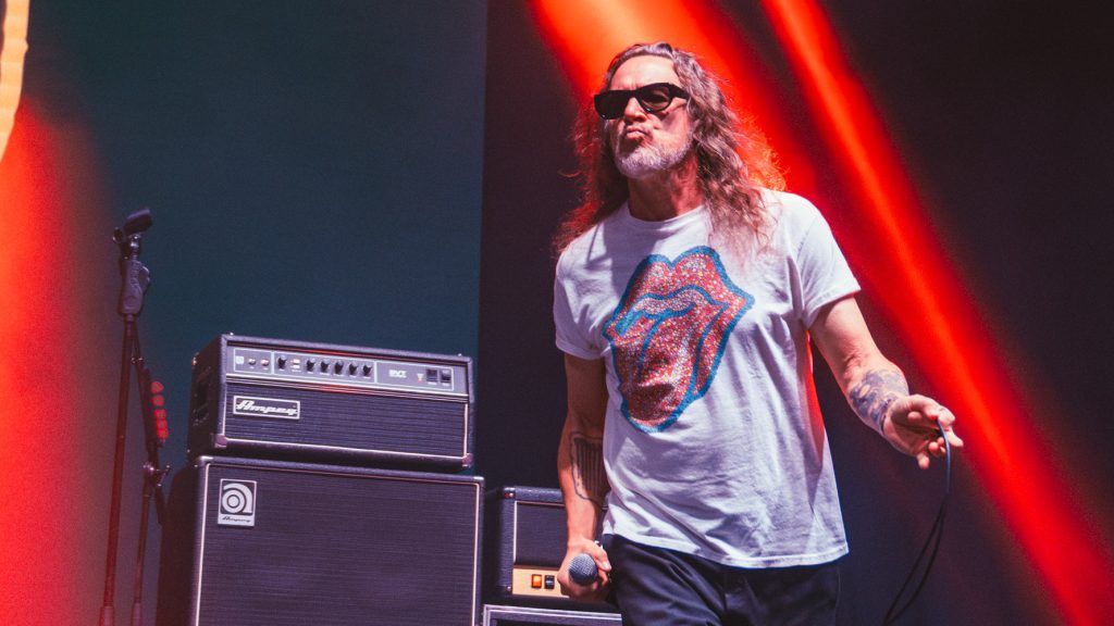 “¿Cómo estamos?” pregunta el vocalista antes de hacer pasar a su primer invitado: el chileno Carlos Fuentes que con una voz arraigada en las características y el estilo grunge, acompañó a la banda para interpretar “Blossom”.