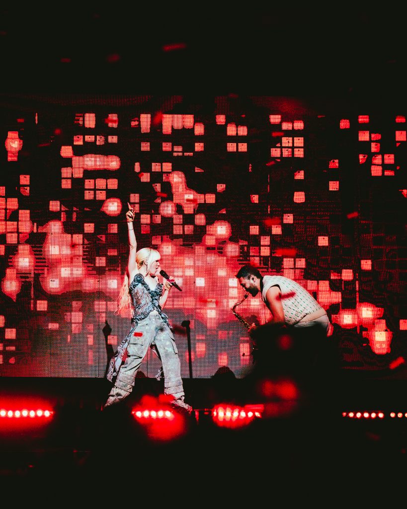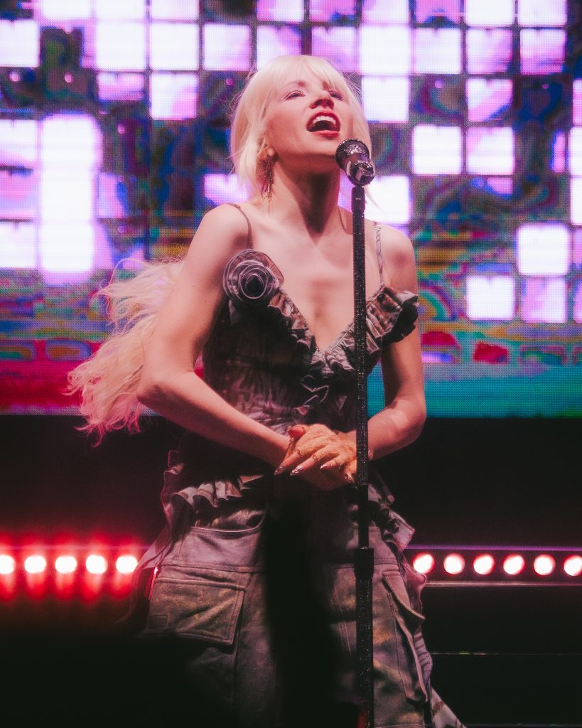Ya siendo el momento esperado, entramos a esta constelación que dejaría soltar sin descanso un arsenal de lo mejor de la canadiense en su etapa más aplaudida, saliendo al escenario de golpe al igual que su banda para mandarse una seguidilla demoledora del Pop más exquisito: «Let’s Sort the Whole Thing Out», su exitazo «Run Away With Me» y «Anything to Be With You» para una apertura soñada. Las siguieron algunas con tono más sensual y aterrizado, siendo «Too Much» y «Talking to Yourself» que nos hacía mover el cuerpo, «Shy Boy» seguir coreografías improvisadas y «Kollage» para también dejar espacio en reflexiones del amor en miles de capas.