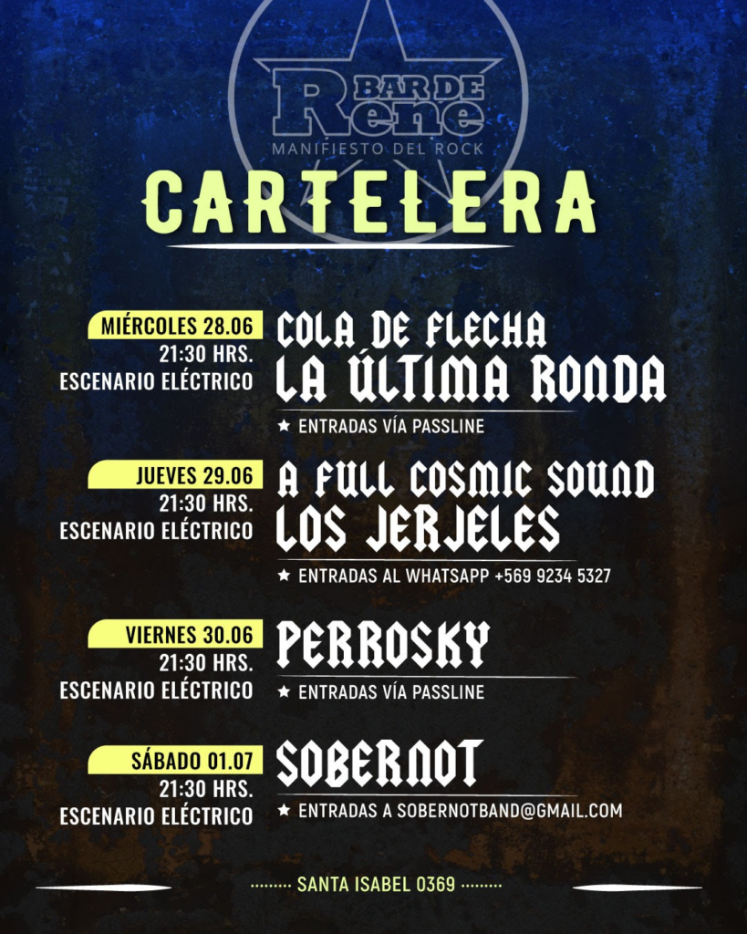 Bar de Rene el mítico espacio de Barrio Italia, reconocido internacionalmente como uno de los lugares en los que bandas consagradas partieron, en estas semanas de invierno, invita a los amantes de la música a disfrutar de los mejores shows en vivo.