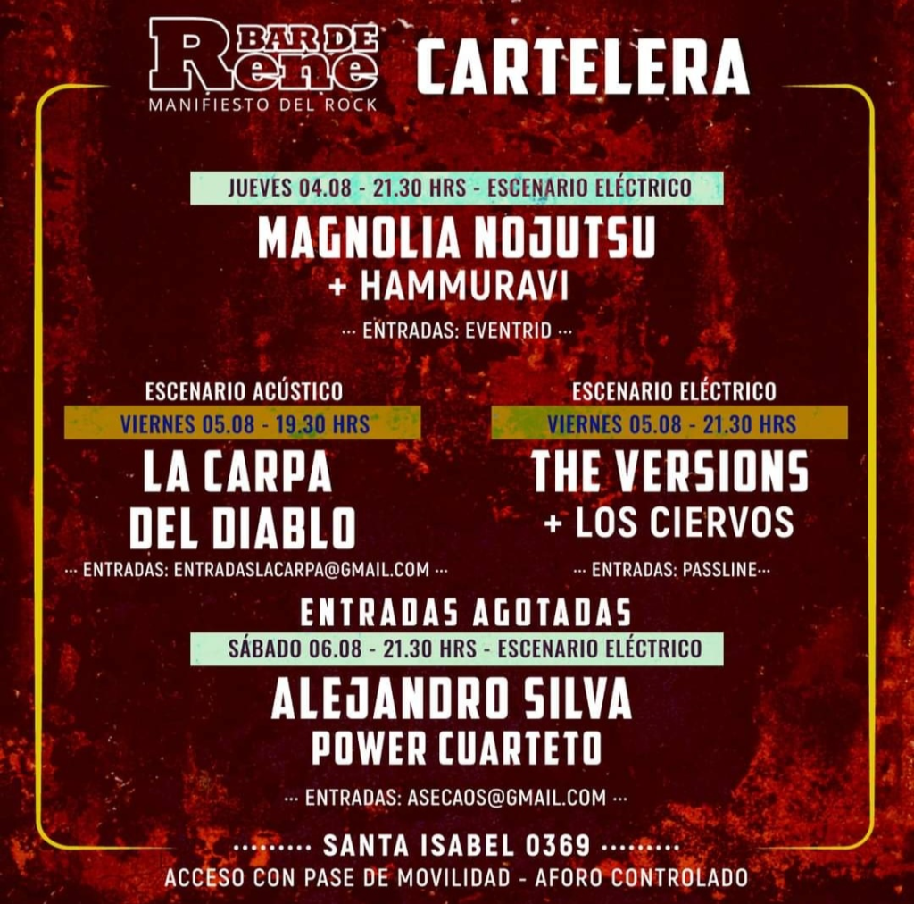 Comienza el mes de agosto en Bar de René, lugar que te invita a pasar las ultimas semana de invierno, con lo mejor de la música del circuito nacional.