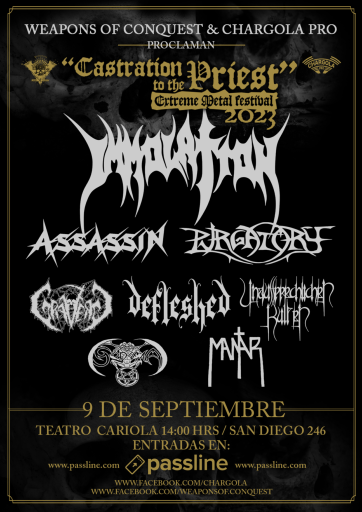 Weapons of Conquest, en conjunto con Chargola Pro, traen de vuelta este brutal festival de metal extremo que se realizará el próximo sábado 09 de septiembre en el Teatro Cariola.