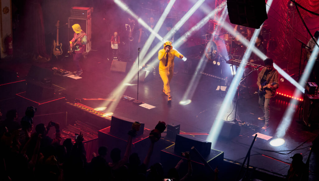 El grupo entra a escena con todo, inician con la conexión «Hacia el Ovusol» y «Huevos Revueltos» para darse a conocer lo que se ve en sus conciertos: los Juanitos al alza, gente saltando y cientos de voces cantando. Lalo Ibeas con un traje de Pikachu -que es curioso asociarlo siendo un personaje popular en los noventa- incentiva a todos y todas en ser un mar de emociones que se dieron a conocer en momentos de explosión como «Moscardón» o «Funky tu Madre» y en vacilaciones sincronizadas como «Sinfonía de Cuna» y «Solo Contra el Mundo». Hubo espacio para cada uno y mostrar sus potenciales que se han mantenido durante el tiempo, siempre coherente Felipe Ilabaca en bajo, la dureza en la batería de Toño Corvalán y los sonidos galácticos en la guitarra de C-Funk. Por supuesto, menciones honrosas a la banda de apoyo.