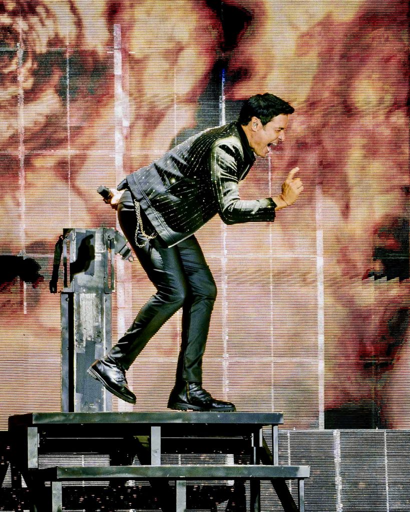 “Hola Santiago”, fueron sus primeras palabras dirigidas hacia nosotros, con muy pocas pausas dentro del show pero siendo precisas para conocer ese lado más sensible del artista, contando por encima su relación con nuestro país, hablando de los shows en Viña y Concepción, y recordándonos que Chile y cada uno de nosotros ocupa una gran parte de su corazón. Con esas palabras se metió a un estadio lleno al bolsillo, y como no, un encanto único que hasta el hombre con la masculinidad más frágil estaba rendido a sus pies gritándole “mijito rico”.