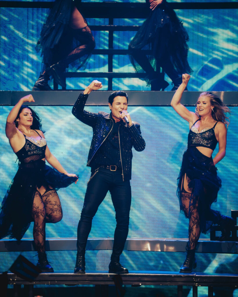 El primer cambio de vestuario -de varios durante la noche-para interpretar “Y tú te vas” con un público entregado a sus pies. Vuelve a dar las gracias e invita a cantar algunas canciones antiguas con un mini set de clásicos -como prácticamente todo el concierto. Impresionante la cantidad de canciones que son parte del repertorio popular latino- con «Yo te amo”, «Volver a nacer”, «Tu pirata soy yo” y “Completamente enamorados”. Uno de los puntos más altos de la noche.