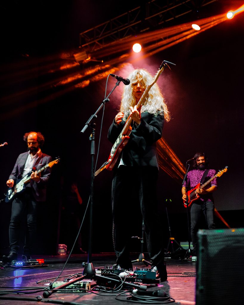 Con un histrionismo y carisma inigualables, Rosenvinge se dio tiempo para moverse sobre el escenario bailando, realizando performance, entregando un mensaje de consciencia y autocuidado o interactuando con el público (micrófono en mano), sin embargo, lo momentos más notables fueron cuando su voz regaló magia pura y su corporalidad se expandía encumbrando su guitarra eléctrica por los aires y entre las ondas eléctricas del trío que la acompaña.