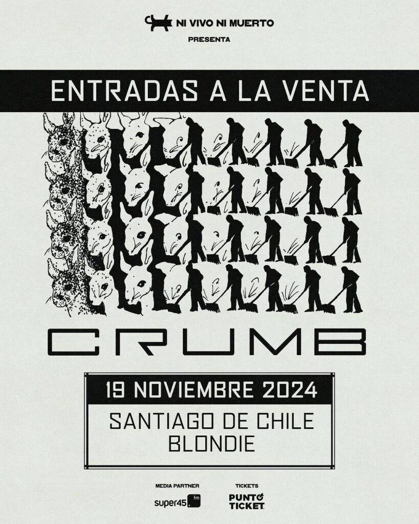 La ternura del Pop envuelta en una psicodelia constante. Eso es Crumb. El cuarteto estadounidense quienes debutaron en nuestro país, el 2022 en la versión del Fauna Primavera, vuelve a suelo nacional para presentarnos «AMAMA». Y para quienes no los conocen, fieles a la psicodelia de ensueño Lo-Fi, han evolucionado de manera clara, enriqueciendo el alma de la banda en infinitos parajes musicales que no dan forma, sino vida a la banda. Hipnótico, frenético y oscuro, el último trabajo de Crumb nos muestra un proceso natural en su constante búsqueda de experimentar con diferentes ritmos e ideas musicales.