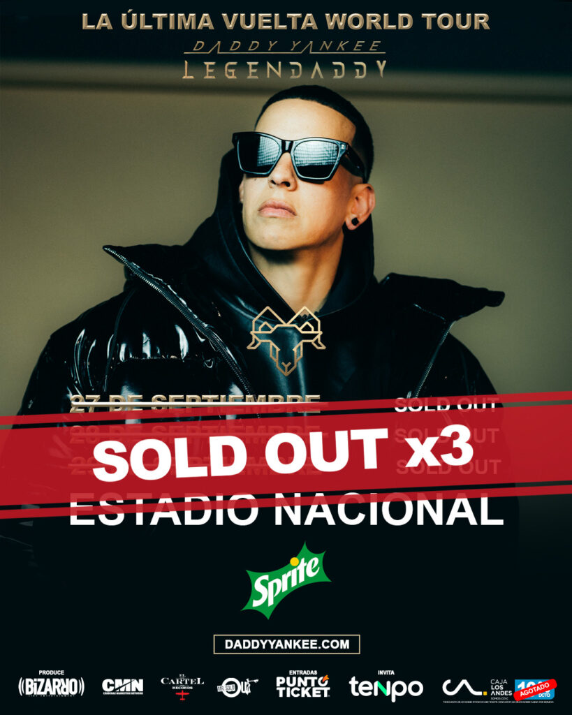 Leyenda y pionero del reggaetón, Daddy Yankee presentará en Chile parte de su último disco, Legendaddy, así como también las canciones que abrieron las puertas al reggaetón y que se convirtieron en éxitos globales de la música. Y su fiel público lo espera con 3 Estadios Nacionales abarrotados.