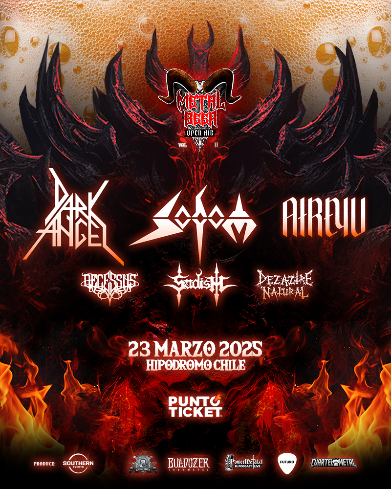 Luego del rotundo éxito de su primera versión, Metal Beer volverá a encender el Hipódromo Chile, en un festival que promete una experiencia más impactante y electrizante para los amantes del metal. Los internacionales de Sodom y los chilenos Sadism y Decessus fueron los primeros confirmados al evento que se realizará el domingo 23 de marzo de 2025 y ahora se suman Dark Angel, Atreyu y Dezaztre Natural.