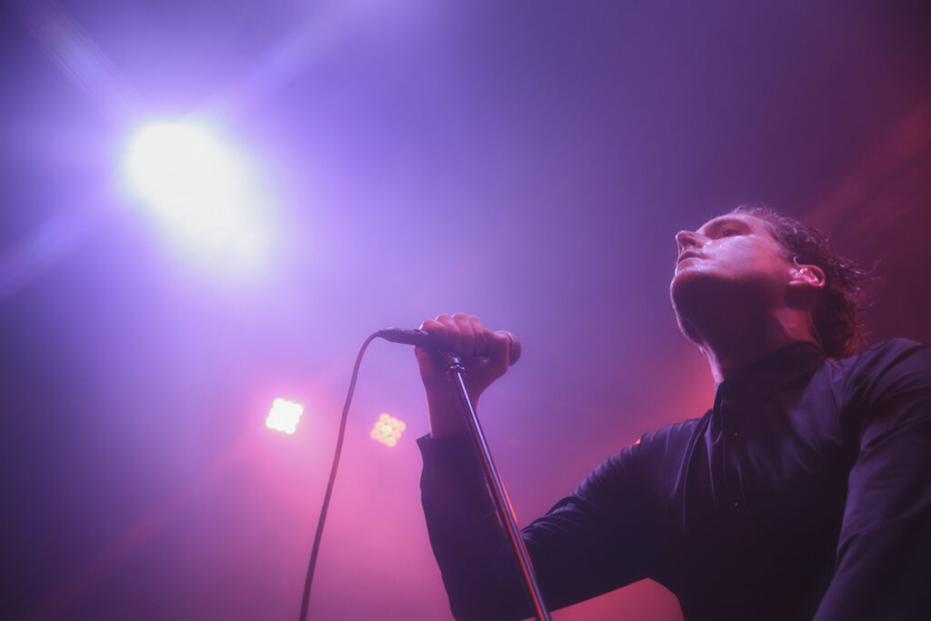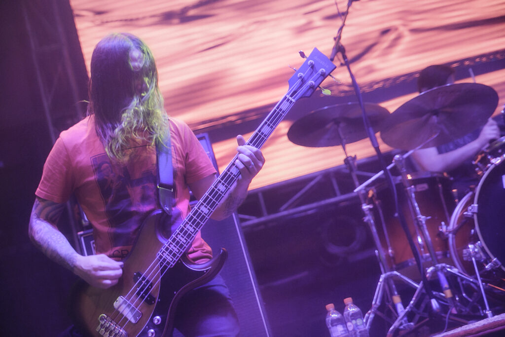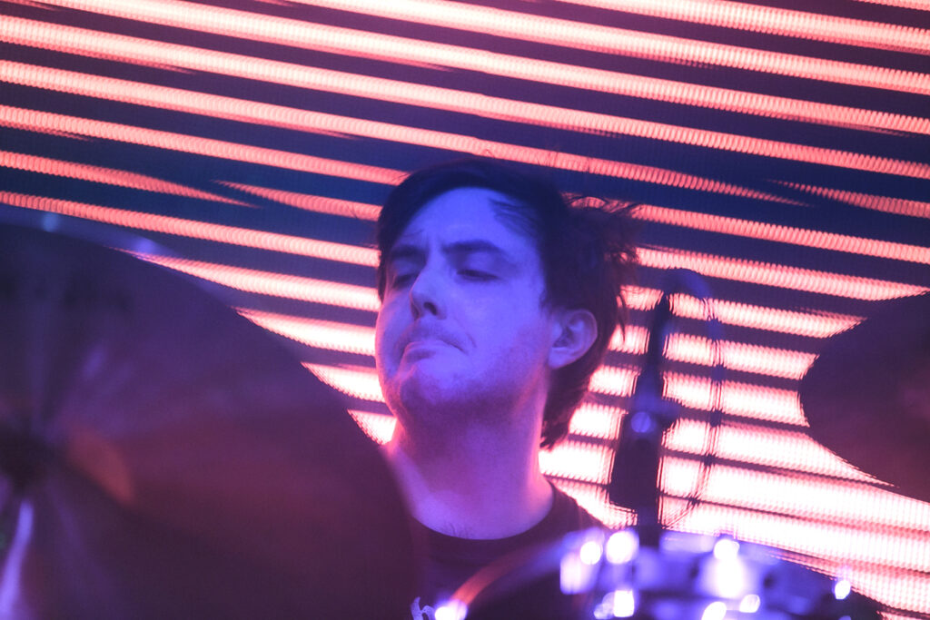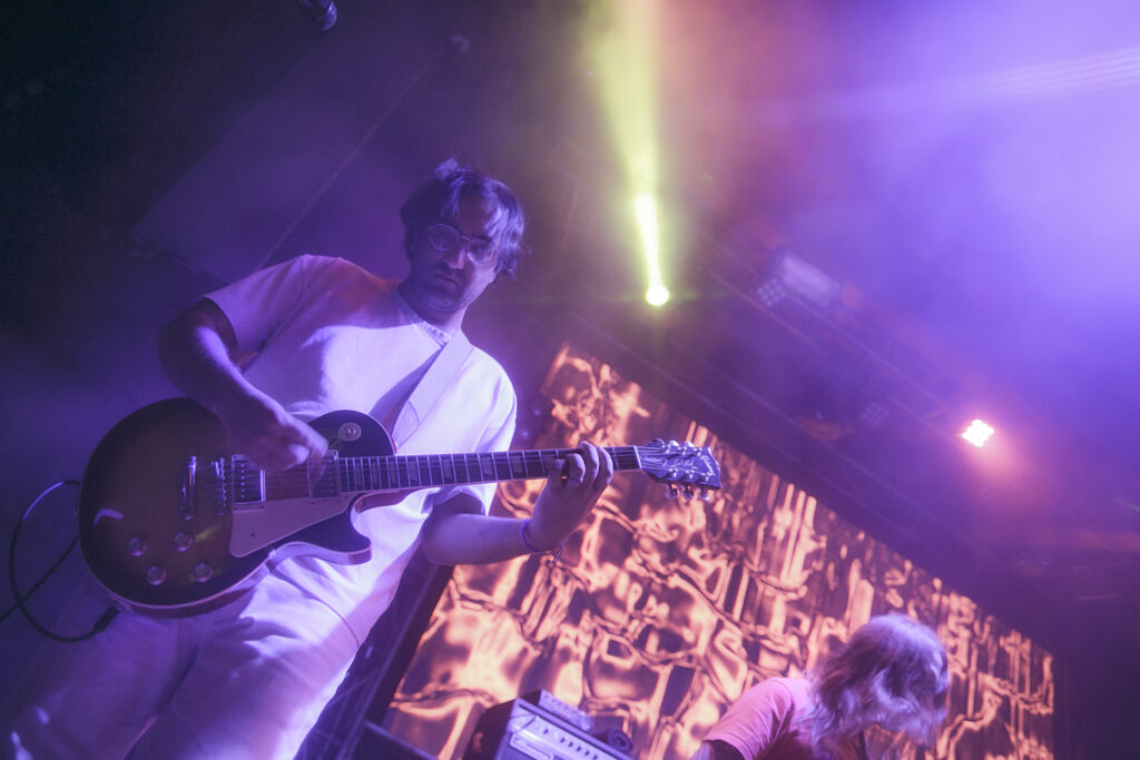 Un muy breve saludo para no dar respiro y continuar con «Sunbather» de su álbum de igual nombre. Locura total. George es un frontman increíble que te envuelve y te invita a dejarte llevar con la música y sus gritos estridentes. En esta canción, y en la siguiente – que fue «Shellstar»– pudimos apreciar algunos problemas de sonido en el micrófono de vocalista, que aunque parecieron molestar al frontman por un momento, fueron rápidamente solucionados y no empañaron en nada la actuación de la banda. Cuando el micrófono falló, el público cubrió. Todo en orden. Junto a «Shellstar», hubo todo un bloque más tranquilo de canciones de su último álbum «Infinite Granite» (2021), un bloque de corte más Dream Pop / Shoegaze donde interpretaron «In Blur» y «Great Mass of Color» que fue coreada por gran parte de los asistentes.