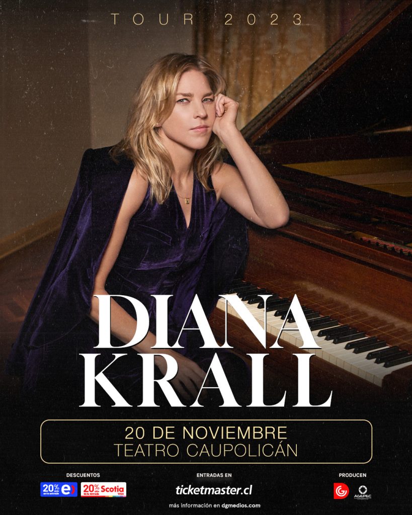 La pianista canadiense Diana Krall regresará a Chile para el lunes 20 de noviembre en el Teatro Caupolicán.