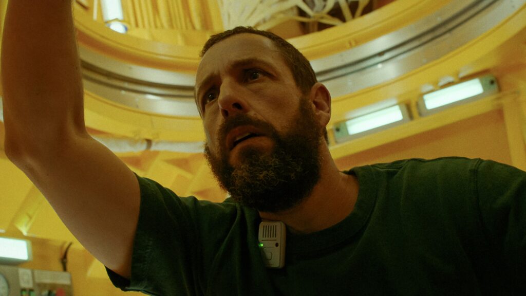 Adam Sandler logra aportar a su interpretación de Jakub la misma seriedad profundamente humana que ha mostrado en actuaciones destacadas de su carrera anteriormente como en «Punch-Drunk Love» (2002) y «Garra» (2022). Tanto él como Carey Mulligan y su poder estelar de actuación también ampliamente reconocida en recientes largometrajes como lo fue en «Maestro» (2023), obliga a mirar más allá de los detalles expuestos. Mientras que Paul Dano presenta una interpretación vocal empática y sutilmente alienígena, quien más que representar a un personaje vivo que respira, opera casi como un recipiente para las ideas temáticas más importantes de la narrativa. Es a través de Hanuš que la película encuentra infinitas maneras de discutir los complejos emocionales que aquejan al astronauta, pero que puede llegar a desperdiciar la poca identificación de su historia al priorizar sus grandiosos mensajes sobre la importancia de la conexión en un universo misterioso y vasto, por sobre el desarrollo de personaje.
