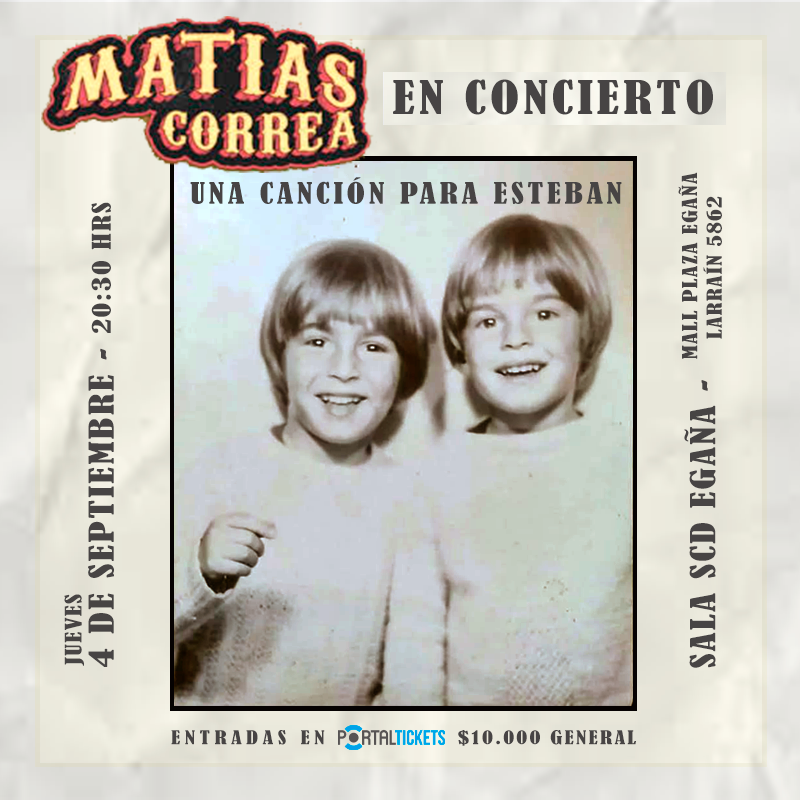 El músico y poeta nacional Matías Correa se prepara para ofrecer un concierto emotivo en la Sala SCD Egaña el 4 de septiembre, en memoria de su hermano Esteban, quien falleció recientemente debido a una cardiopatía. El concierto, titulado «Matías Correa en Concierto: Una Canción para Esteban», será una celebración simbólica del cumpleaños de Esteban, que habría cumplido 47 años a finales de agosto.