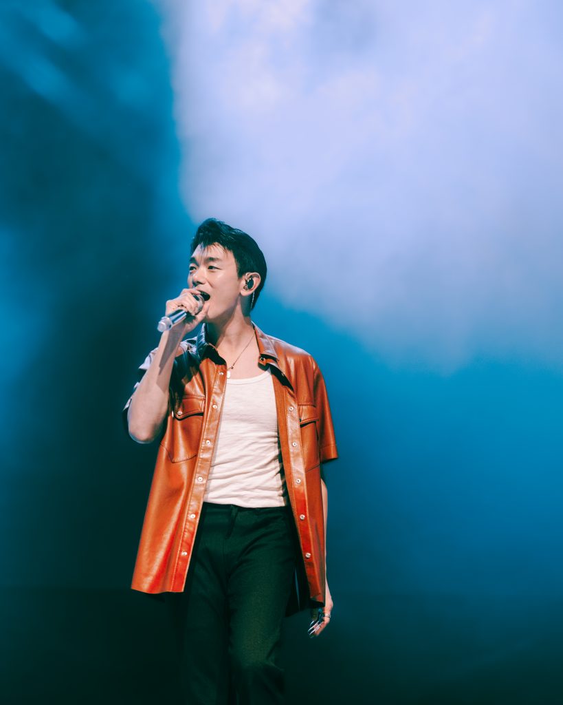 La celebración continuó con un animado canto de Feliz Cumpleaños a los asistentes nacidos en ese día. Entre risas burlescas, Eric solicitó el carné a un espectador para confirmar su cumpleaños, sorprendiéndose de cómo el público sabía más coreano que él, evidenciado por un coro en coreano de «Feliz Cumpleaños». Eric demostró su dominio escénico con «Don’t Leave Yet y «Paradise», interactuando con el público entre bailes y sonrisas. Sentado en una silla, en penumbras, interpretó «I Wish I Wasn’t Me», una de las canciones más emocionales e íntimos de la noche, seguida de «Love Die Young».