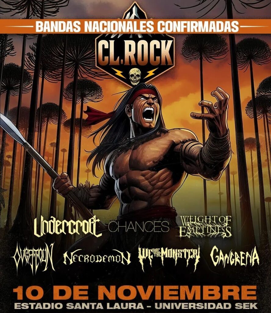 Dentro de la lista, quienes tienen mayor trayectoria -más de 30 años desde su fundación- es Undercroft con su Death Metal. Con ocho producciones, lo creado en su debut a mitad de los noventa marcaría un camino importante para otras agrupaciones del mismo estilo. Acá encontramos mucho material en el cual serán parte de su participación en el festival para demostrar que nuestro país ha mantenido carácter en distintas generaciones, difusiones y aportes. Como dato adicional, hicieron una colaboración con la marca Cerveza Deat que se lanzará en una tocata en Concepción, un día antes del CL. Rock.