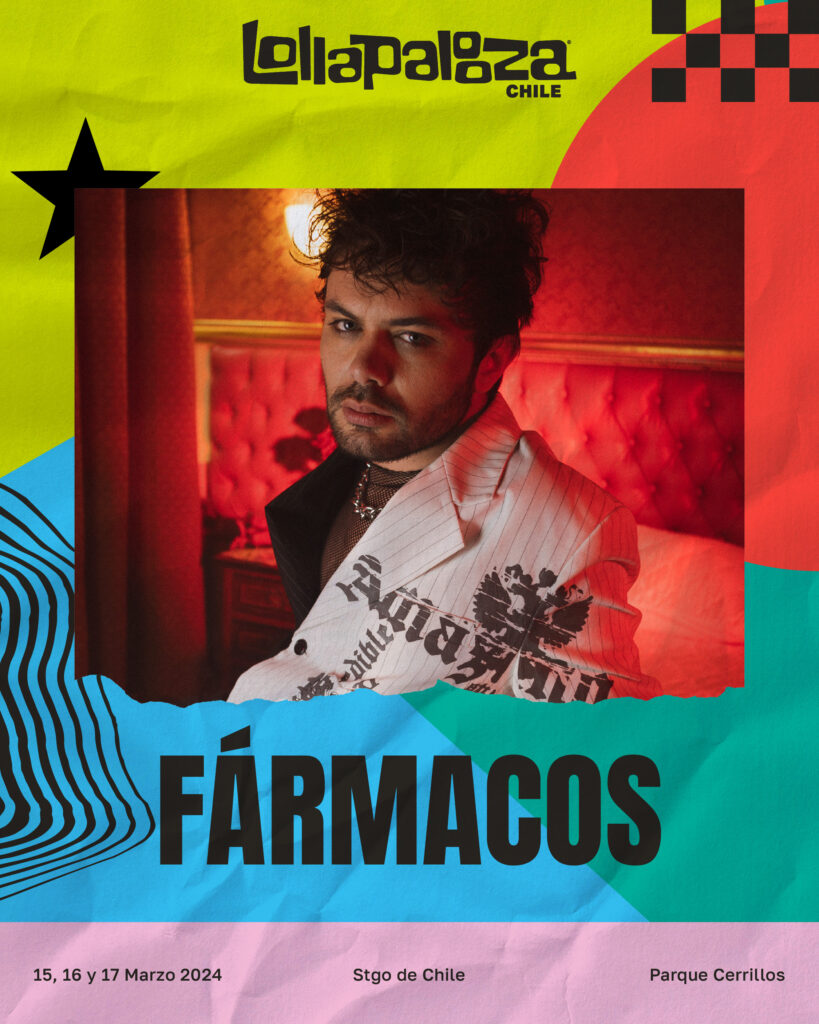De esta manera es que Fármacos se encamina a Lollapalooza Chile, después de 10 años de su debut en el connotado festival. “Siento que tenía que volver a tocar en Lollapalooza y siento que no sé si soy otro, pero vengo con otra versión, respecto a lo que era como persona y artista en esa primera presentación”, expresa Diego. Bajo el sello Virgin Music México, con la producción de Diego Ridolfi y Cristian Heyne en algunos temas, el cuarto disco de Fármacos se prepara para salir durante el primer semestre de 2024.