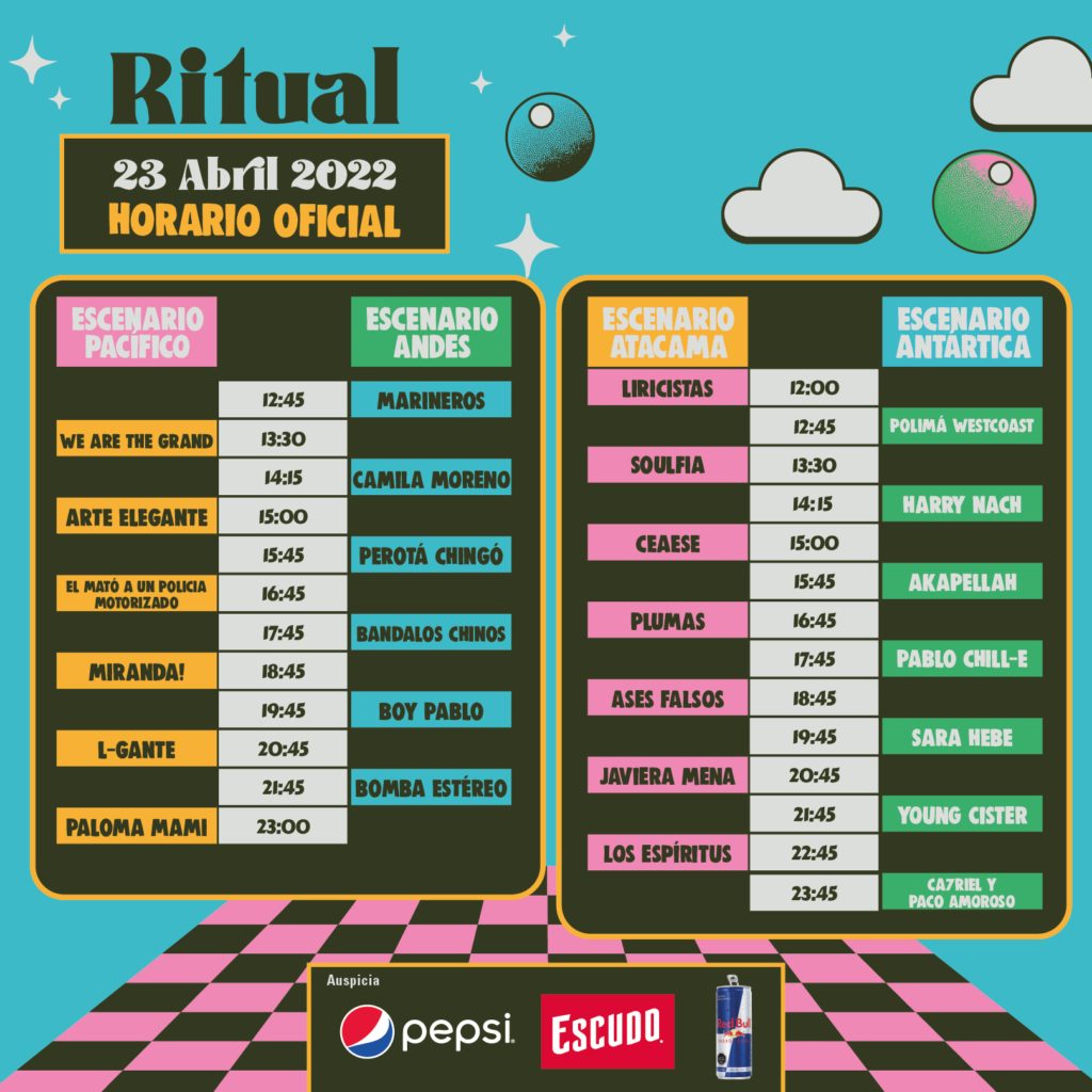 Buscando la manera de que los asistentes a Ritual puedan ver a la mayor cantidad de artistas, durante la maratónica jornada musical del próximo 23 de abril en el Estadio Santa Laura, se han hecho algunas modificaciones al horario.