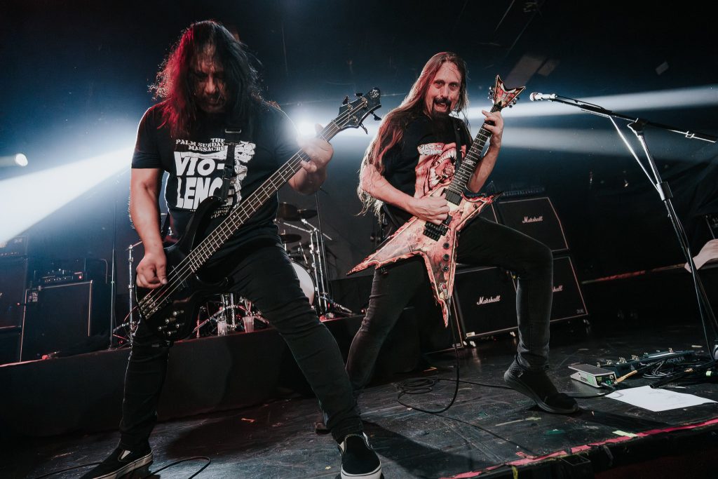 El espectáculo recién comenzaba, y de qué manera. Tras unos tragos y un breve respiro, el público ya se alistaba para lo que se venía sobre el escenario. Y Vio-lence no decepcionó: arrancaron con “Eternal Nightmare”, canción homónima de su primer disco de larga duración Eternal Nightmare (1988), el más representativo y querido por los fans.