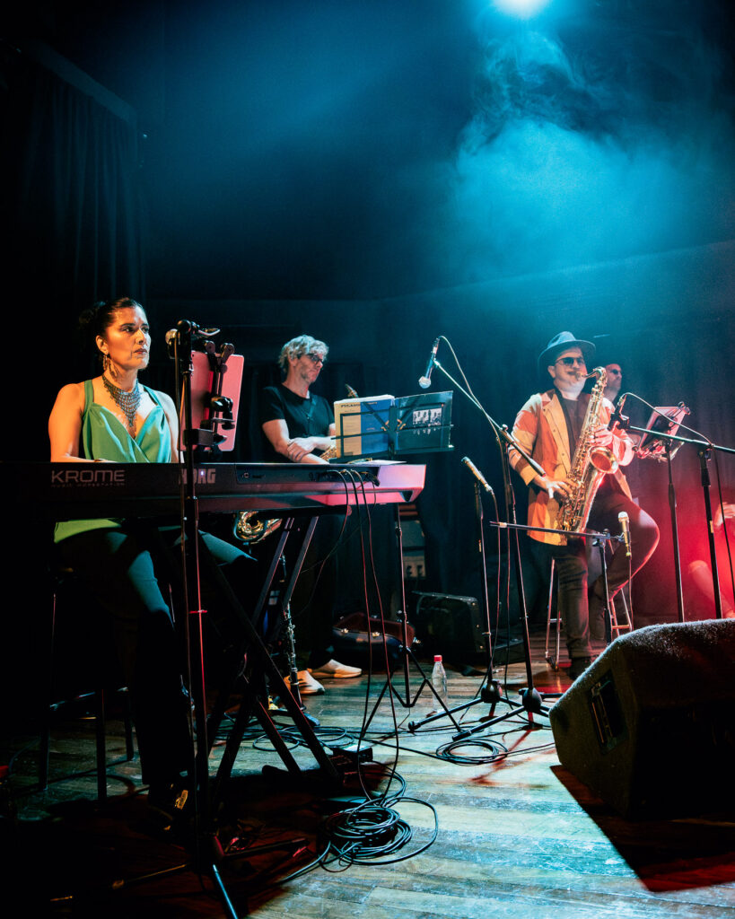 Con la formación completa (bajo, bata, teclados, voz, saxos), Full en pleno desata la fuerza de 7 tsunamis para viajar por el tiempo, llenar el valle, alcanzar las montañas y copar los ríos del sonido, todo con un estruendo que sacude el tiempo de forma implacable e impecable. Así pasan “Calcetín Perseguido”, “Sentimental Blues” (con un huracán araucano y ancestral como guía superior) y “No me gusta que se metan conmigo “ (una marcha hacia el precipicio reluciente donde las teclas bailan sobre la estampida percutida y los tres bronces brillan con su propio peso), acariciándonos con salto hacia el futuro que viene atrás como eco de una voz plateada.