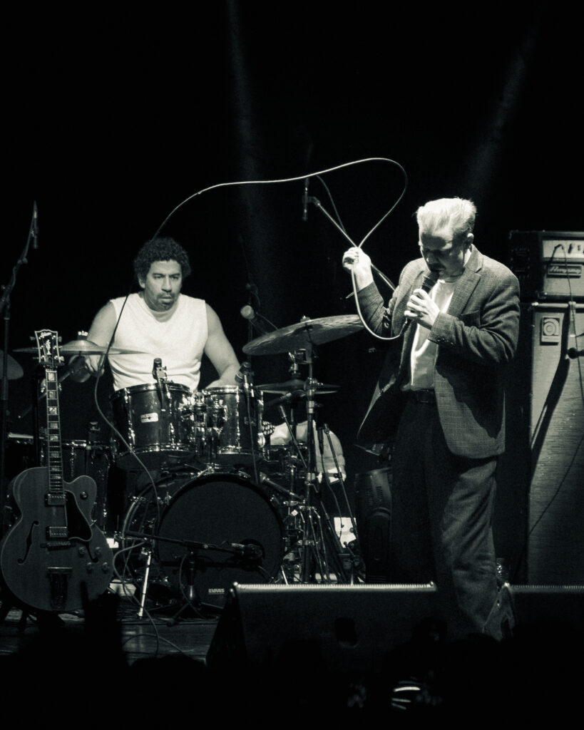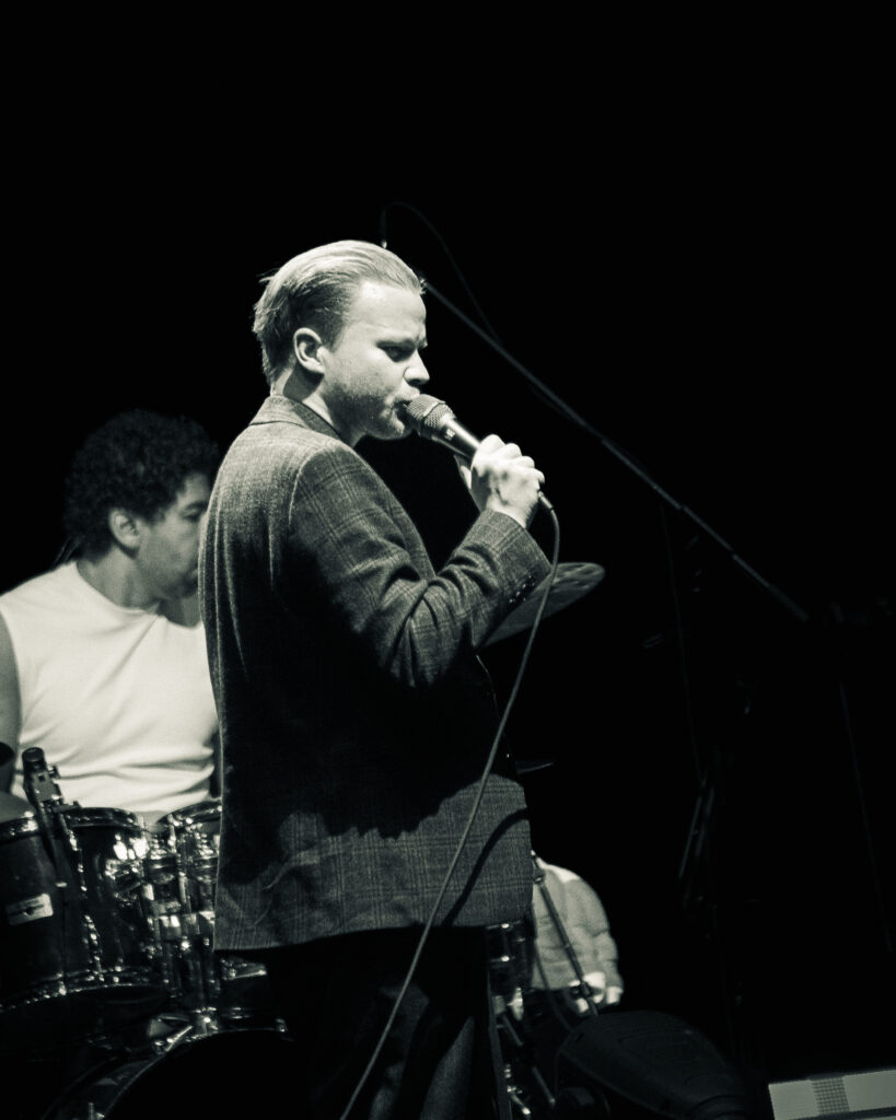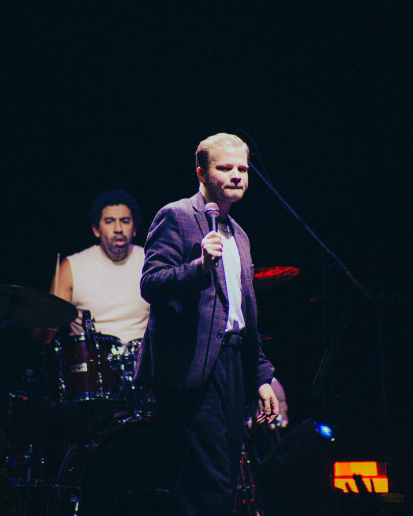 “Blues” continuó el flujo maniaco convirtiéndose en una jam session épica que demostró la increíble química entre Geordie y sus músicos. Esta sensación de grandeza, irónicamente expuesta en la canción, se vió reflejada en cada una de las ejecuciones con un virtuosismo único y con un groove tan fascinante que no bailar era imposible. El momento de real desenfreno, lo vivimos con “Holy, holy”, el primer single de “The New Sound”. Un momento de total desenfreno que nos arrastró a la pista de baile de un viejo hotel de lujo en esta sátira sobre la masculinidad y el narcisismo.