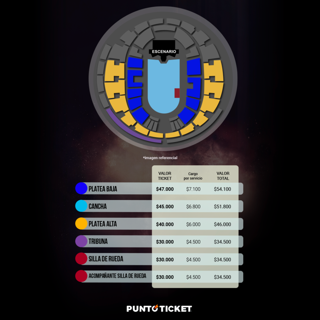 Las entradas ya están a la venta a través de Puntoticket, con nuevas ubicaciones disponibles (abajo en la imagen). Produce Lotus.