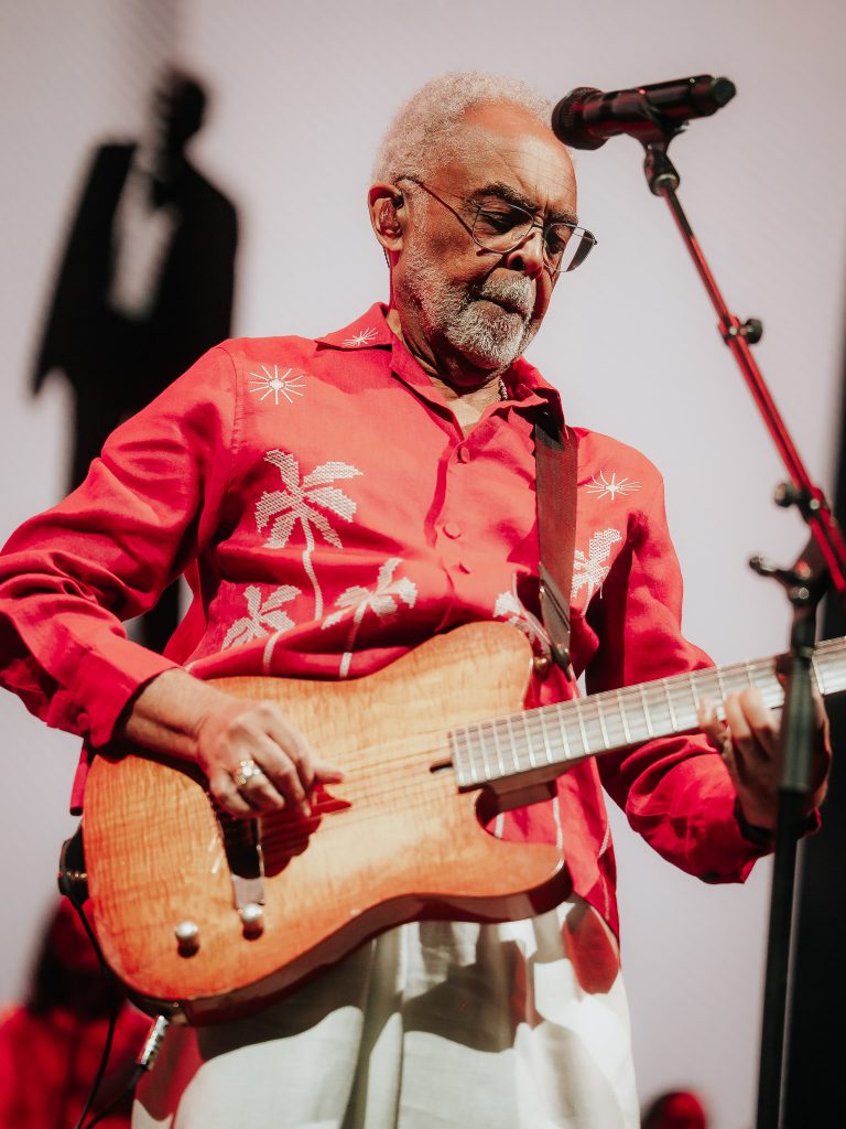 El espectáculo recorría un setlist que se articulaba en tres conceptos. Todo comenzó cuando Gilberto Gil subió al escenario con los brazos abiertos al ritmo de “Palco”, una canción que celebra la alegría de estar sobre un escenario. Sonriendo y con su guitarra eléctrica, marcó el inicio de este encuentro vivo que continuó con “Banda Um” y la emblemática “Tempo Rei”.