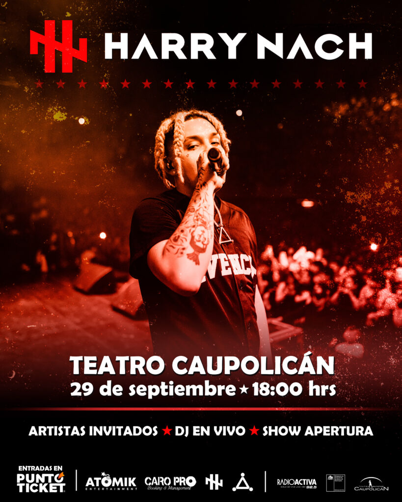 Harry Nach, artista urbano nacional que ha cosechado decenas de éxitos, marcará un nuevo hito en su carrera. El próximo 29 de septiembre realizará su primer Teatro Caupolicán con un show para todas las edades y lleno de sorpresas. El intérprete de “Fixona” llegará hasta el recinto de San Diego para repasar todos sus hits junto a sus fanáticos. El Dizzy Boy también aprovechará la ocasión para revisar pasajes de “Flints”, su más reciente disco lanzado en marzo pasado.