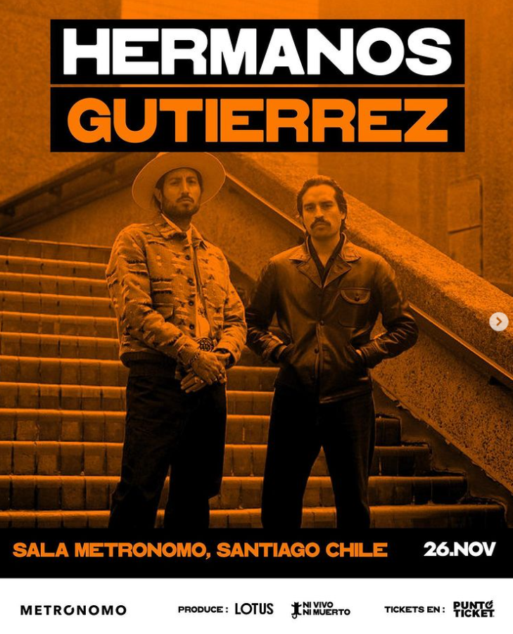 Si no te quieres perder esta increíble experiencia y toda la instrumentalidad característica de los Hermanos Gutiérrez, recuerda que un día después de su presentación en Festival Fauna Primavera 2023, estarán presentándose con un íntimo show en Sala Metrónomo el día Domingo 26 de noviembre.