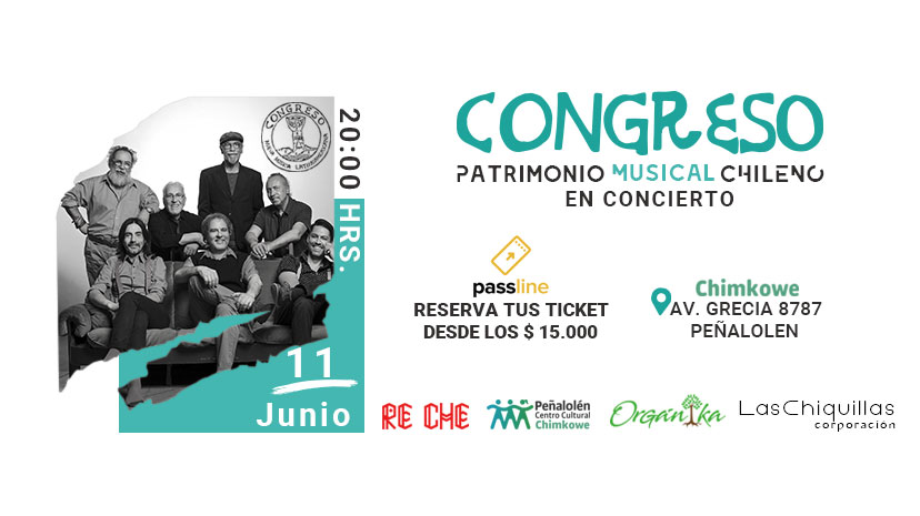 La destacada banda chilena Congreso realizará un recital homenaje rescatando la trayectoria y el aporte al Patrimonio Musical haciendo lo que mejor saben: cantando e interpretando sus grandes éxitos que los han consagrado como una de las agrupaciones más relevantes de la música chilena. La cita será el sábado 11 de junio en el Centro Cultural Chimkowe de la comuna de Peñalolén.