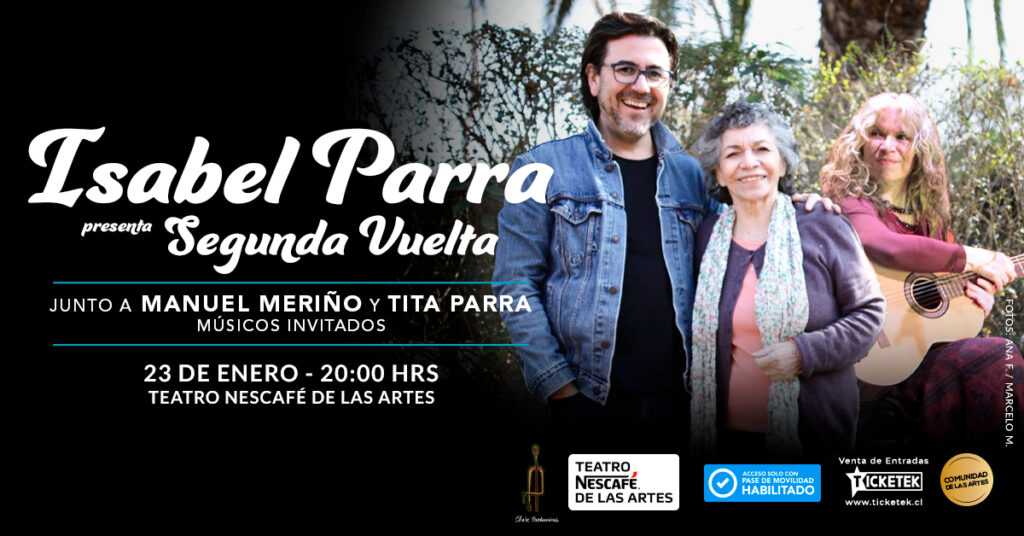 Teatro NESCAFÉ de las Artes confirma el regreso por el éxito de público -a solo cuatro meses de su última presentación- de uno de los referentes de la Nueva canción chilena, Isabel Parra, con el recital «Segunda vuelta», el domingo 23 de enero.
