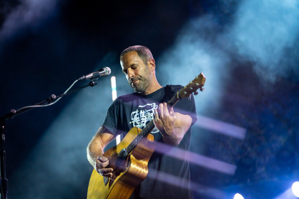 Siendo las 21:15 y con un recibimiento cargado de aplausos y vitoreo por parte de los asistentes, Jack Johnson y su banda soporte hacían su ingreso al escenario, siendo «Hope» el tema con el cual darían inicio a una jornada memorable, en el cual, desde un inicio, se vio el apoyo del público presente, apoyo que se haría permanente a lo largo del show. La presentación, sin generar pausa alguna, vino acompañado de «Taylor», siendo a esa altura, un inicio cargado a temas clásicos, lo cual se reflejaba en el seguimiento del público, quienes se manifestaban coreando cada tema. Ya en la tercera canción de la presentación, vino el turno de «One step ahead», tema de su nuevo disco. Pero claro, los clásicos iban a ser una constante durante la presentación y con ello surgirían algunas sorpresas por parte de Jack Johnson. Ya con un Movistar Arena encendido y acompañado de imágenes de fondo que representaban el océano y el surf, una de las pasiones del artista, vendrían los turnos de «Flake» y «Upsidedown», este último, como parte de los temas más esperados por el público presente, con ello, sumarian «Badfish», cover con el cual realizaban un pequeño tributo a la gran banda californiana Sublime.