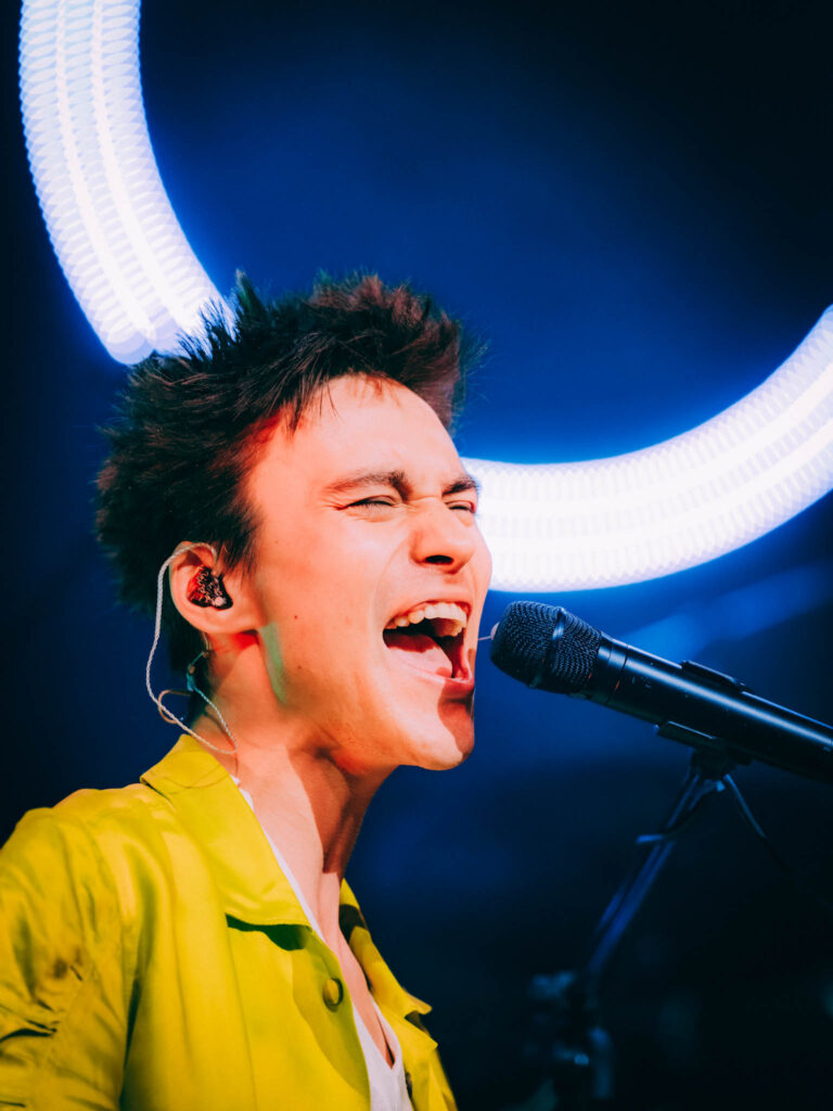 La conexión no fue solo musical: con humor y carisma saludó en español, “¿Cómo están todos? Yo soy Jacobo”, desatando risas. Entre la euforia también hubo instantes íntimos, como “Little Blue”, interpretada con guitarra acústica y seguida de un apagón perfecto tras un coro unísono del público que arrancó una ovación conmovedora.