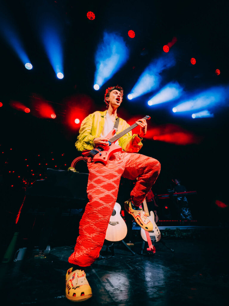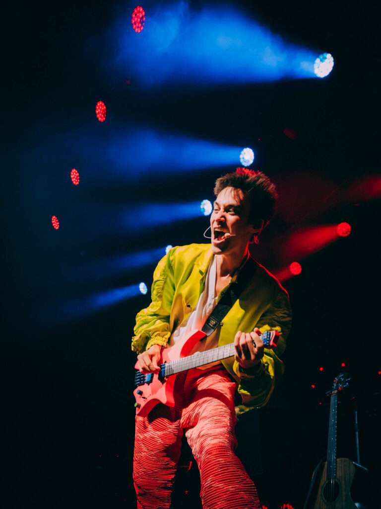 El show fue un estallido de energía. Con su guitarra eléctrica en mano, Jacob Collier recorrió el escenario mientras su banda, tres músicos excepcionales en batería, guitarra y bajo, más dos coristas, creaba un sonido potente, casi orquestal. Collier saltaba de un instrumento a otro, guiando también los aplausos y las voces del público, convirtiendo el concierto en un arte vivo e irrepetible.