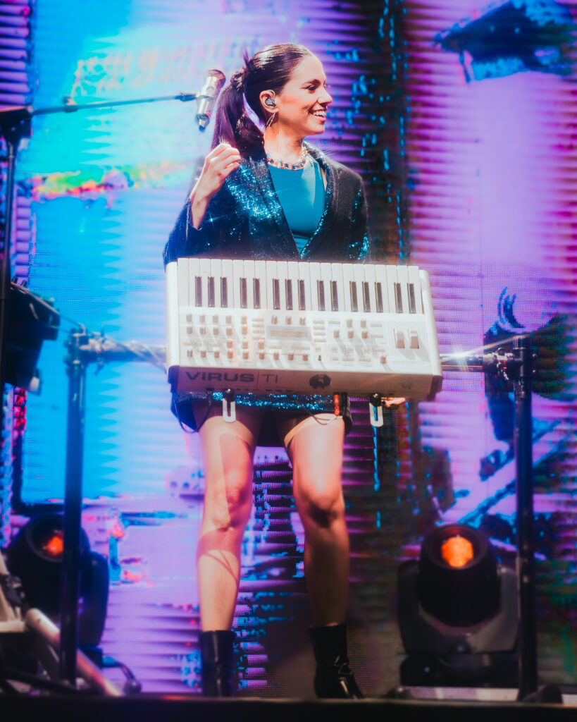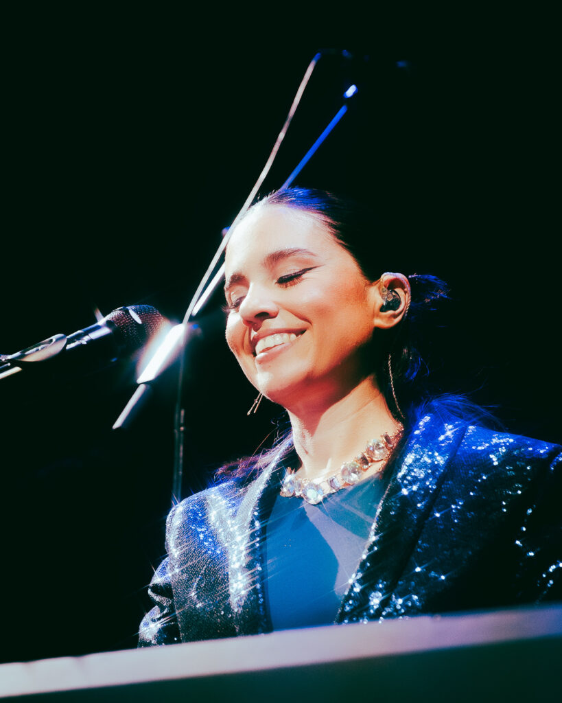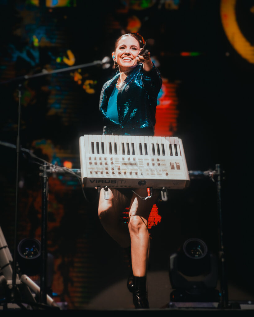 «Hasta la verdad», «Acá entera» y «La joya» encendieron la pista de baile de un presente luminoso, mientras que «Casan» y «Como siempre soñé» (con Princesa Alba como flamante invitada) fueron parte de un viaje hacia la nostalgia adolescente sin edad. Dentro de esas ventanas hacia días de descubrimientos musicales y sensoriales también hubo espacio para joyas como «Cámara lenta», «Sol de invierno» (con Gepe iluminando el camino al mismo tiempo que la anfitriona de la noche) y «Un audífono tú, un audífono yo».