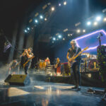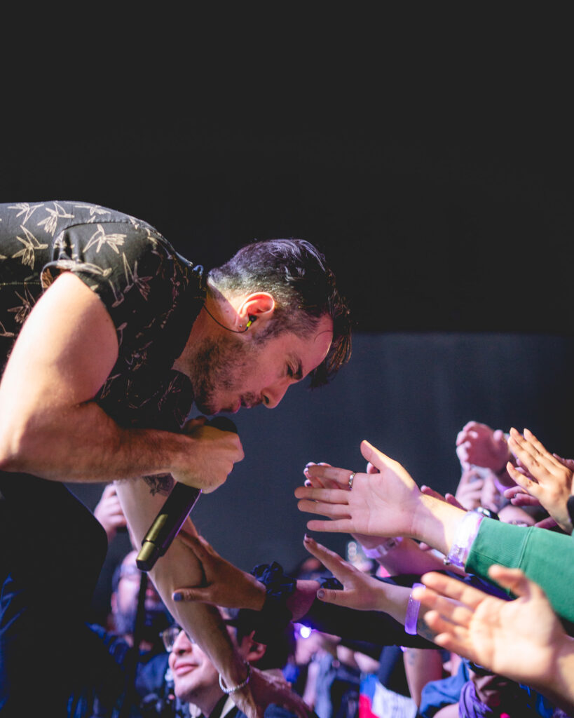Pero si algo pudo exaltar a la fiel fanaticada fue inmediatamente después con “Sólo a terceros” de su ex agrupación, Pxndx, del álbum Poetics (2009). Nostalgia a la vena, sin duda. Sin parar un minuto, canción tras canción, Pepe y compañía siguieron con “Soy diluvio”(Giallo, 2022); “Le Petite Mort” (2020), pasando por “Sin Anpersand” (Psalmos, 2019). En una parte del show, un ramo de rosas fue lanzado desde el público hacia el escenario, y en un acto dramático, Pepe lo destruye con ánimo de furia y dolor. Luego lo lanzó a la audiencia junto a unos claveles (creo). En una maratónica sesión llega el encore. Un descanso que era necesario para seguir con una noche que se negaba a terminar.
