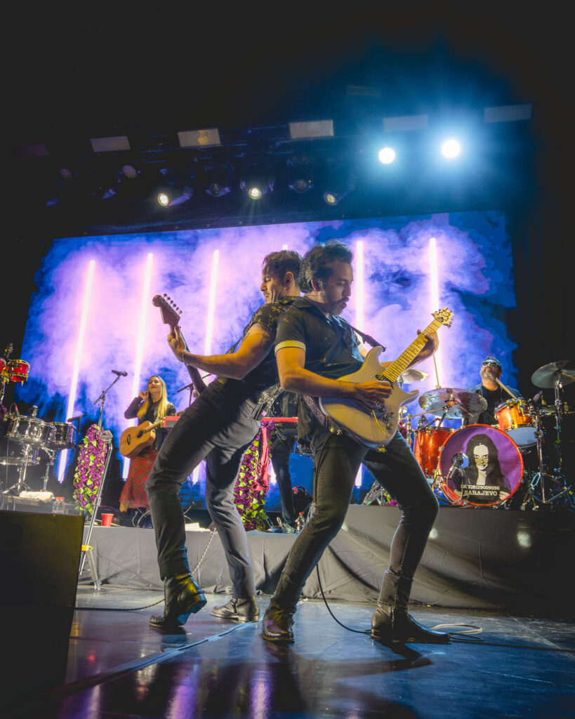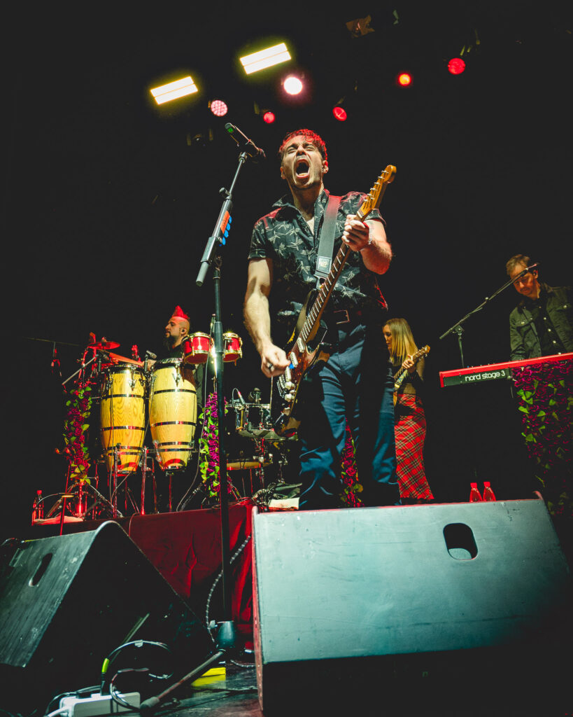 La puesta en escena se imponía como un ente que abarcaba todo el teatro. Una pantalla gigante proyectaba imágenes hipnóticas que acompañaban a la narración, un juego de luces que interactuaba con el público, los músicos en escena disfrutando cada momento, y José Madero, amo y dueño del Coliseo no lo paraba nadie. La noche siguió con “Lamentablemente” (Psalmos, 2019); ¿A poco no? (Carmesí, 2019); “Suspira sobre mí”(Sarajevo, 2024); “Teoremas, etc.” (Teoremas, 2021); “Noche de brujas” (Noche, 2017), canción en la que aparecieron imágenes de monstruos famosos para nosotros: Drácula, Freddy Krueger; brujas malvadas, casi como preparándonos para Halloween; pero el momento en el que el público estalló en frenesí fue con “Plural siendo plural” (Carmesí, 2016), un momento de intimidad con la fanaticada quienes eran un solo coro.