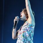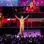 El punto alto de la noche fue claro, el nombramiento de Natalia Lafourcade no puede no causar cosas en el público, siendo la responsable de -con el recuerdo de su voz- remover emociones y sembrar magia junto Kevin y junto a «Tú ve», haciéndonos danzar de un lado al otro con este dueto lleno de dulzor. Paseamos por «Sur o no sur» como preámbulo de una de las referentes de éste lado del continente. La historia se remonta a una madre de crianza tradicional que con una personalidad irreverente, entre viajes y amistades, se encuentra con otra madre, quién con su trayectoria y antropología de las raíces, gestó un antes y un después de la música en nuestro país. La primera es Marta, la madre de Kevin, la segunda es Violeta. Como honor a la herencia, nos entrega una juguetona versión de «El Albertío» que comienza como como un acústico para terminar intervenida por juegos eléctricos.